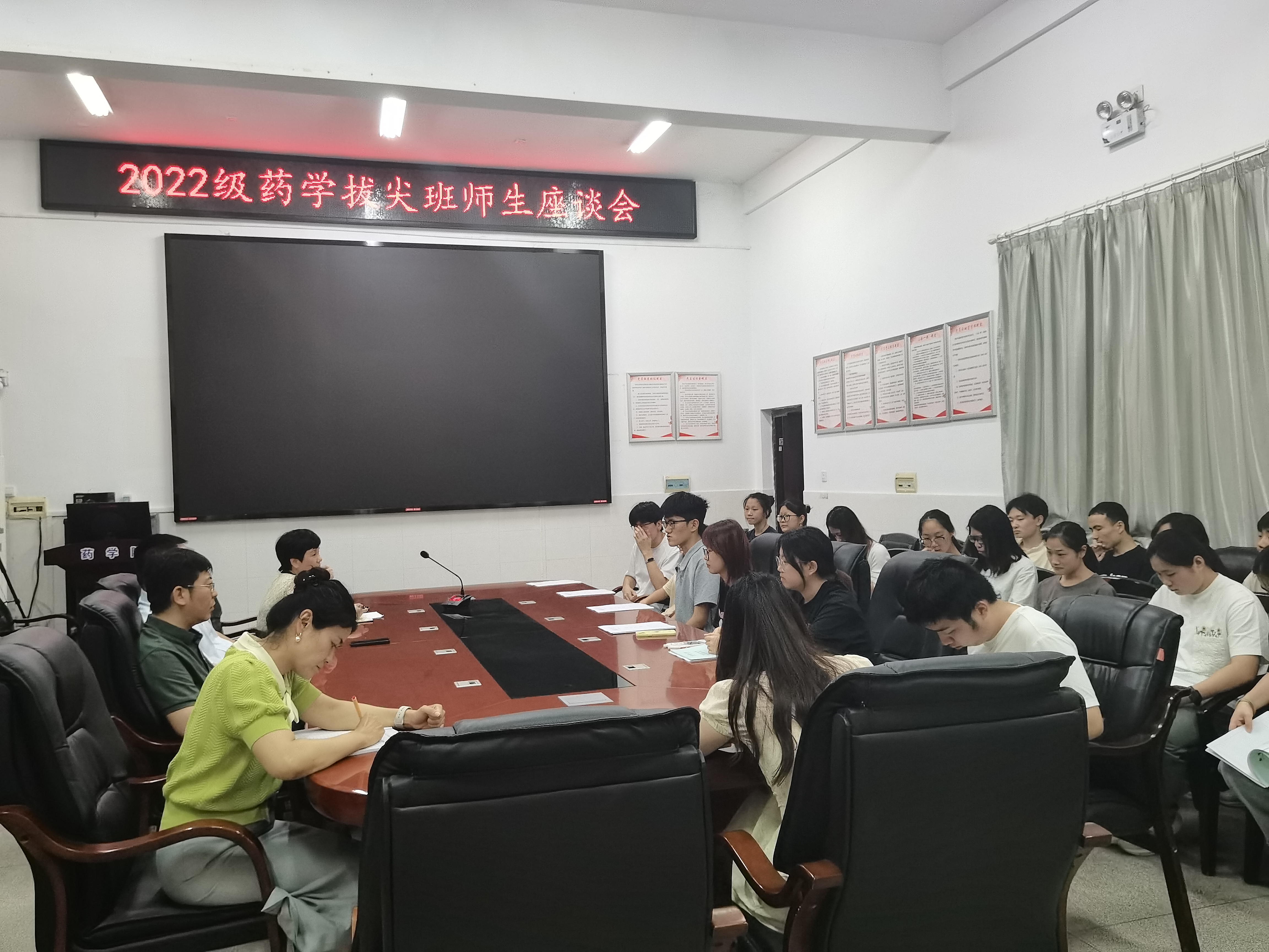 为扎实推进药学拔尖人才培养工作,帮助同学们明确实习目标与职业规划,6月19日,药学院召开了2022级药学拔尖班实习动员暨师生座谈会。药学院院长王震、党委书记袁中华、副院长易岚以及教师代表出席座谈会,与2022级药学拔尖班同学深入交流,答疑解惑,共话成长。