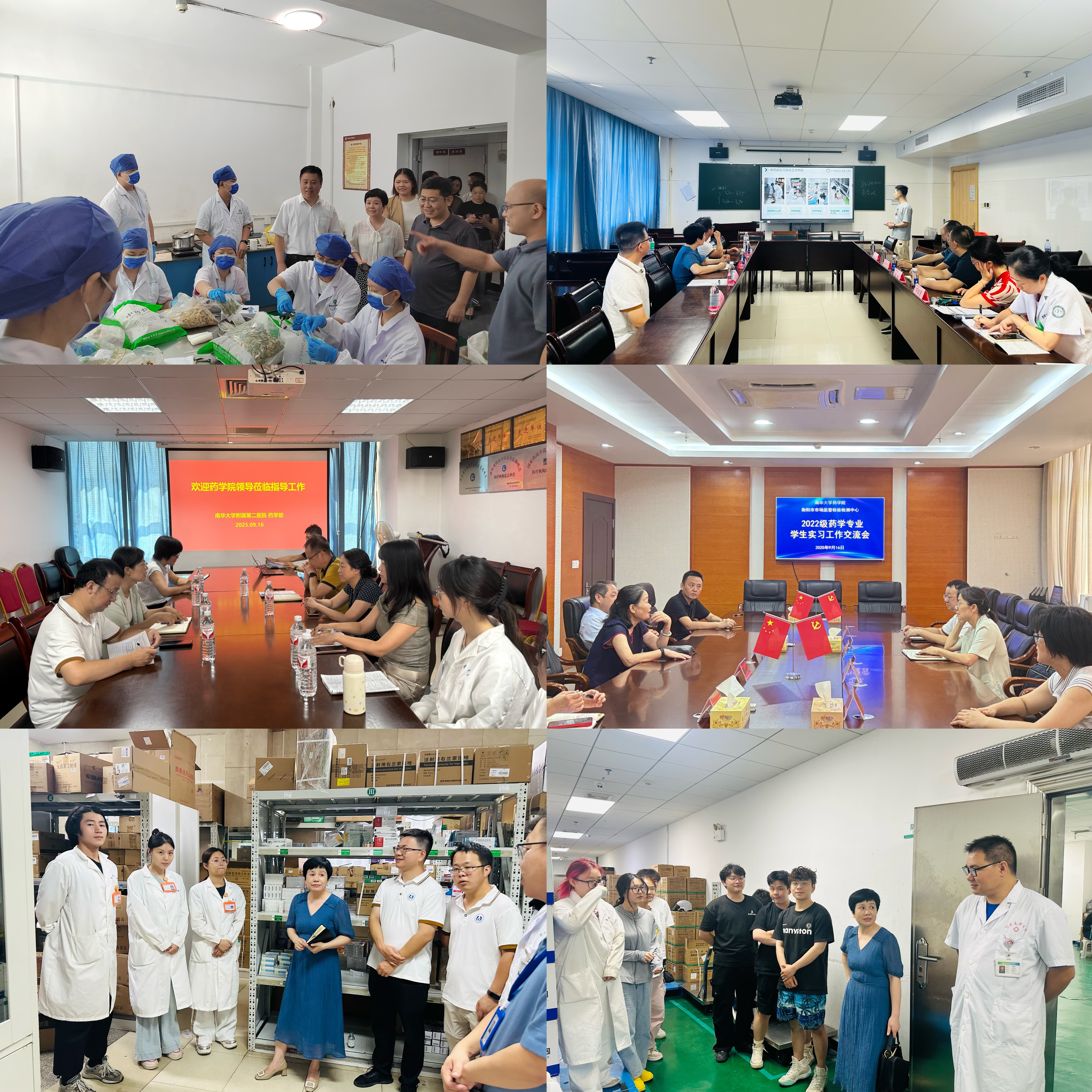 为加强实践教学过程管理,确保实习教学质量,近日药学院组建了专项检查组,对2022级药学专业学生实习工作开展了全面检查。本次检查由党委书记袁中华、院长王震、副院长易岚和党委副书记陈健平带队,协同实习带队老师及教务办老师,分三组同步开展实地检查。检查组先后走访了衡阳市中医医院、南华大学附属南华医院、南华大学附属第一医院、衡阳市中心医院、衡阳市市场监督检验检测中心以及南华大学附属第二医院等实习单位。