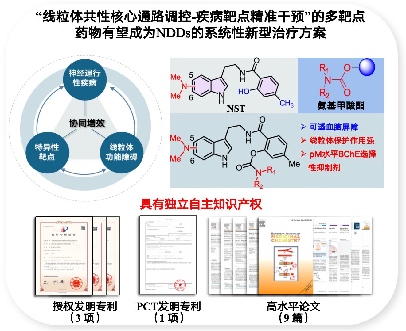 该项目聚焦阿尔兹海默症的先导化合物开发,创新提出“线粒体共性核心通路调控—疾病靶点精准干预”的协同治疗策略,旨在通过高选择性BChE抑制剂提升脑内乙酰胆碱水平,改善认知与情绪障碍,为神经退行性疾病的治疗提供了全新且可靠的解决方案。在王震教授与彭雪博士的悉心指导下,团队通过严谨的实验设计与扎实的数据支撑,赢得了评委的高度认可。