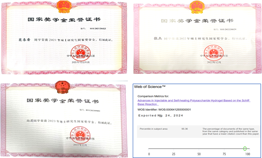 迄今已有24名硕士研究生和4名博士研究生在课题组攻读学位。有15名硕士研究生和4名博士研究生顺利毕业并获得学位。其中,2019级硕士莫春香、2020级硕士张杰和2021级博士向莉先后荣获“研究生国家奖学金”。