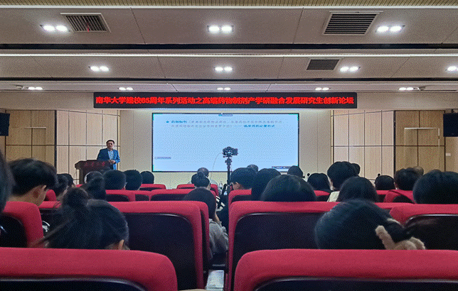 2023年10月15日,复旦大学特聘教授陆伟跃博士应邀来到南华大学参加南华大学建校65周年系列活动之高端药物制剂产学研融合发展研究生创新论坛,为学院师生作题为“脑部肿瘤靶向递药策略与实践”学术报告。此次论坛旨在搭建一个学术交流的平台,进一步推动药物制剂领域研究的创新和发展。