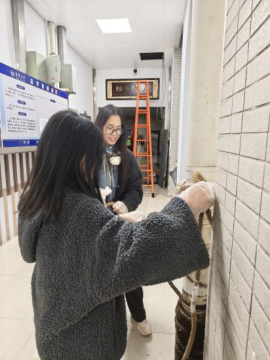 活动前期,党支部通过线上会议明确目标、划分区域、强调安全,并备齐剪刀、手套、垃圾袋等清洁工具。活动现场,党员同志满怀热情投入工作,针对学院教学楼、绿化带等处护栏上缠绕的废弃绳子、横幅残片等杂物,大家分工协作、默契配合。面对部分顽固缠绕杂物,同志们耐心用工具小心裁剪、逐步剥离,确保不损坏护栏设施;发展对象以党员为榜样,积极主动参与劳动,展现出强烈的责任意识和服务热情。