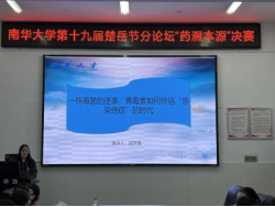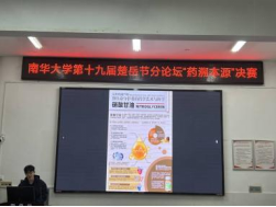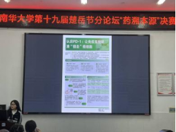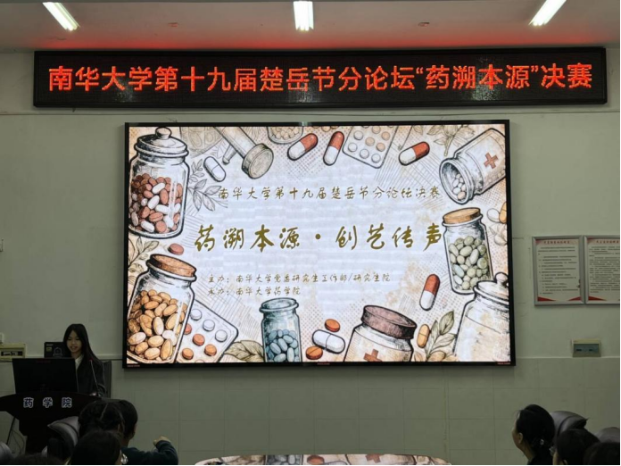 药溯本源传薪火,创艺为媒展新声。2025年11月24日晚上,南华大学第十九届研究生楚岳节“药溯本源・创艺传声”药学院分论坛决赛在药学楼101成功举办。本次活动由南华大学党委研究生工作部、研究生院主办,药学院承办,吸引了来自药学院、土木工程学院等多个学院的众多研究生积极参与。药学院党委副书记陈健平、党委研究生工作部思就科唐雅晶以及药学院导师刘运美、罗芳贞老师应邀出席评审,决赛由药学院研究生团委学生会执行副主席甘培主持。