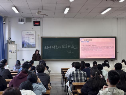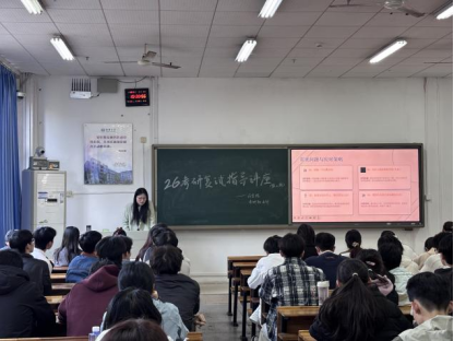 为助力考研学子精准备战复试、全面提升综合应试能力,切实解决备考过程中的难点困惑,3月13日下午,药学院于南华楼108教室成功举办“2026年第二期考研复试指导讲座”。本次讲座特邀甘培、刘佳怡、肖芷惠、冯薇薇四位优秀研究生代表担任主讲人,凭借其真实的复试实战经验和专业的备考心得,吸引了众多药学专业备考学子到场参与,现场座无虚席,学习氛围浓厚而热烈。