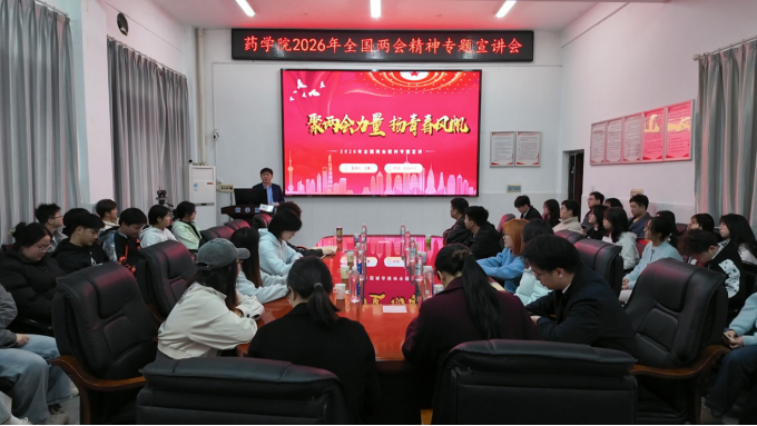 为深入学习贯彻2026年全国两会精神,4月3日下午,雷竞技中国 在药学楼101会议室召开全国两会精神专题宣讲会。本次宣讲会由学院党委副书记陈健平主持,第十四届全国人大代表、药学院院长王震教授担任主讲人,以“聚两会力量·扬青春风帆”为主题,为全院师生代表作了一场内容翔实、视野开阔的专题解读。教师代表与学生代表齐聚现场,共同学习两会精神,把握行业发展方向。